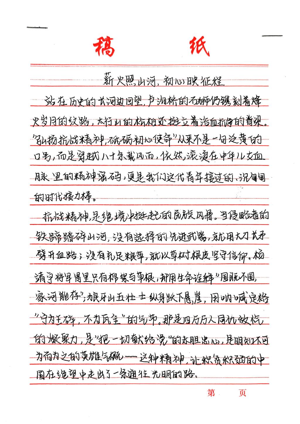 2025年是中国人民抗日战争暨世界反法西斯战争胜利80周年。为弘扬以爱国主义为核心的伟大抗战精神,坚定理想信念,为让全体师生深刻铭记抗战胜利的伟大意义,缅怀革命先烈。校团委举办了以“弘扬抗战精神,砥砺初心使命”为主题的文艺作品征集活动,现将优秀作品展示如下: