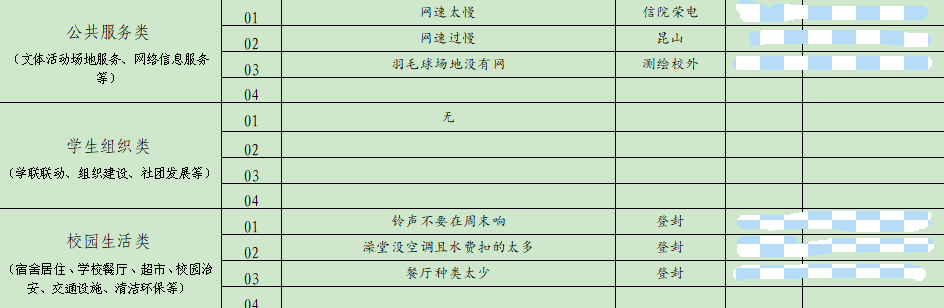 本次活动精心搭建了“校会统筹-院系落实-班级响应”的三级联动机制,形成了高效的信息收集与反馈网络。校学生会权益服务部联合各学院权益服务部,深入班级一线,全面征集学生诉求。经过细致梳理和严格筛选,最终确定了45条聚焦教育教学、学生管理、学生组织、公共服务、校园生活、综合保障等领域的共性急难建议。这些建议不仅反映了同学们的真实需求,也为学校改进工作提供了重要参考。校团委将这些建议与学校各责任部门对接处理,确保问题得到及时解决。